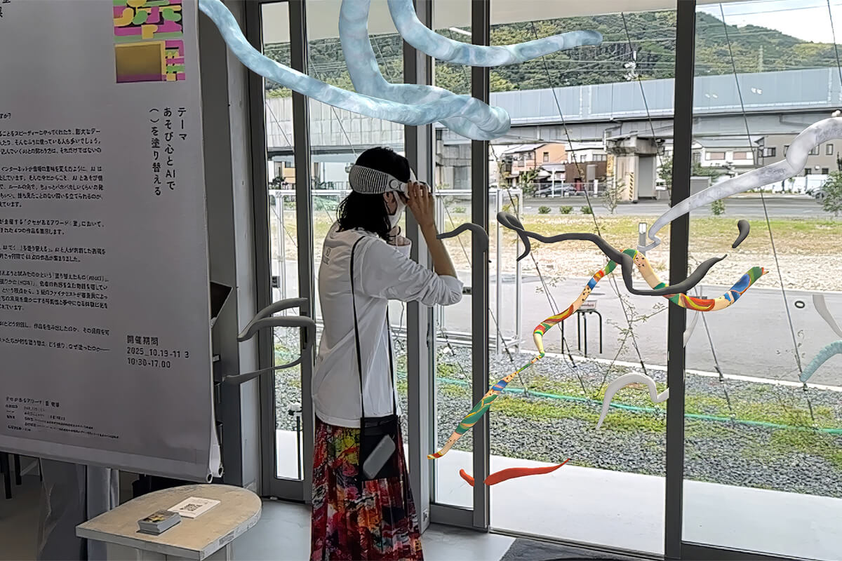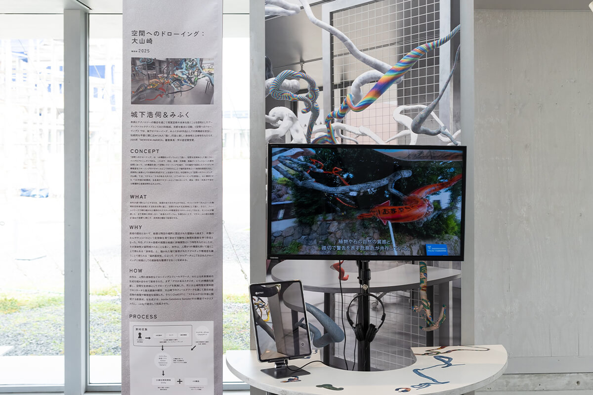 会場である「クセがあるスタジオ」では、Apple Vision Pro を用いて空間に現れるドローイングを鑑賞できる他、iPadを使って AR作品を体験できるように構成した。