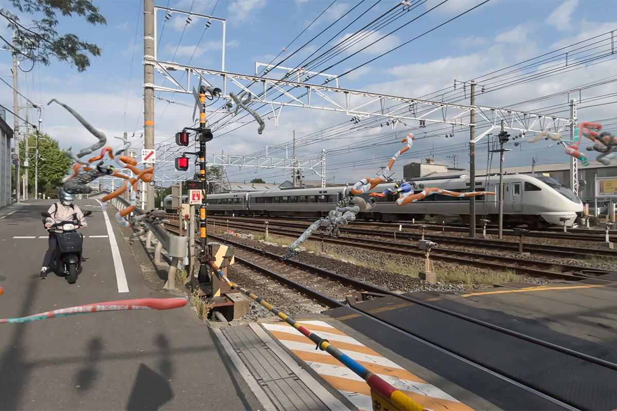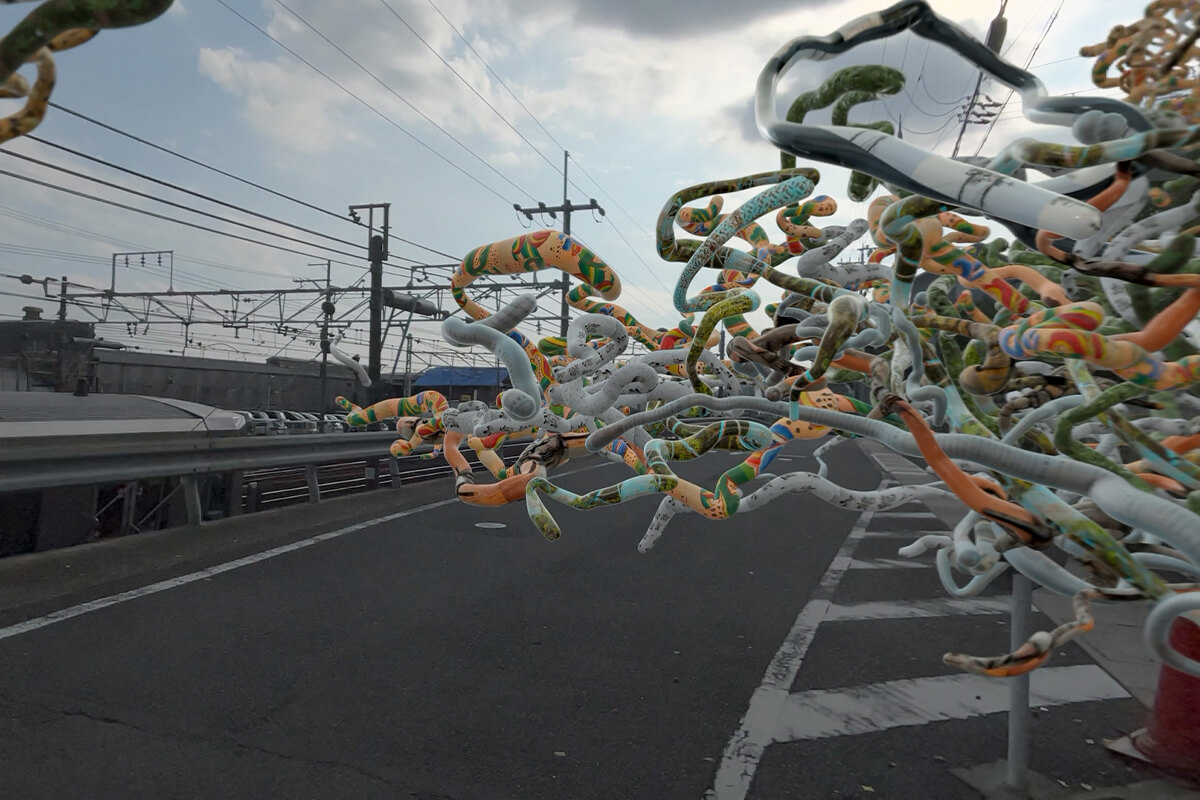 これまで、渋谷、京都、天神橋、高輪ゲートウェイといった都市空間において、VR機器を使って空間にドローイングを描き、その場所で採取したテクスチャや環境音をドローイングのマチエールとして付与することで場所固有性という物理的制限を与え、逆説的に絵画としての実体を形成することを試みてきた。
